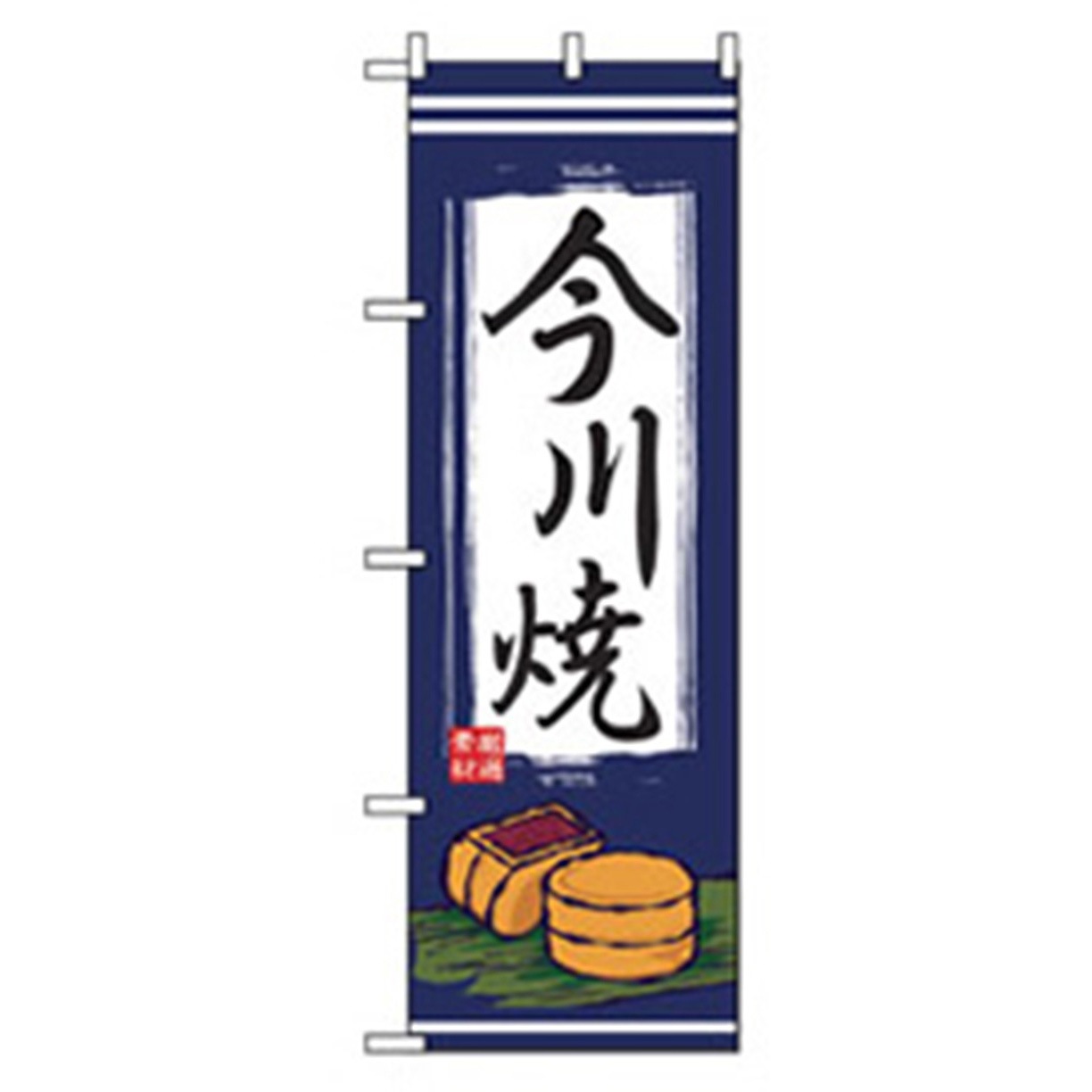用途:周囲に対してのアピール、商品情報などの周知に 仕様:チチ:上部3カ所、側部5カ所 材質:ポリエステル 質量(g):100 寸法(幅W×高さH)(mm):600×1800 表示内容:今川焼 注意※個人宅(戸建住宅・集合住宅)様への配送は行っておりません。 ※配達場所によって、お届け日の延期および別途送料が発生する場合があります。 ※ポールは付属していません、ご注意ください。地域運賃 地域 | 単位 | 配送費 | 北海道地方数量1につき ¥650 / 税込 ¥715 沖縄地方数量1につき ¥1,000 / 税込 ¥1,100 離島数量1以上のご注文お送りできません